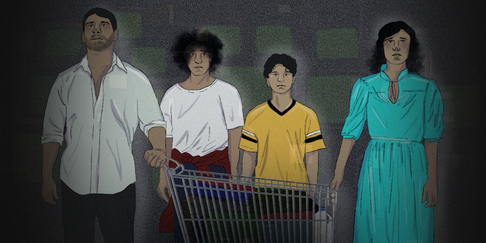 On one level, american (tele)visions, which ran at New York Theatre Workshop until Oct. 16, is a stirring memory play about an undocumented Mexican family and its unraveling. Yet the play, written by Victor I. Cazares, is also a palimpsest of several other things: an unvarnished look at the wages of late capitalism; a rebuke to anti-immigration sentiment; and a valentine to video games and telenovelas. The play is billed as “an epic multiverse where time is fluid” and the characters are also fractalized across different roles — as avatars in video games, as TVs, even, in a whimsical turn by Monte-Brown, as Wal-martina, a walking, talking barcode. Imagine someone carefully pipetting Walter Benjamin into Gabriel García Márquez with a soupçon of Philip K. Dick and setting the centrifuge on high — that would give you an idea of what american (tele)visions is like. What Walter Benjamin set out to do for the Parisian Arcades of the 19th century in The Arcades Project, full of incisive observations, philosophical fragments, and innovative uses of literary montage, Cazares does for our phantasmagorical present moment. For all its mixing of genres, the play, under the direction of Rubén Polendo, remains grounded in the story of the Estradas.