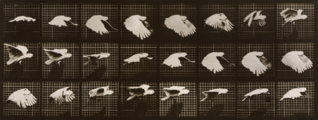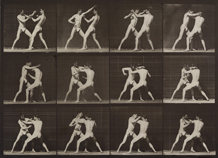 On the Tate Museum website you can access a gallery of amateur photographs taken with the newest iPhone app called the Muybridgizer. “Create your own Muybridgized images” the promotion line reads. There is a beautiful irony that Muybridge the photographer has been turned into a machine. The application captures your movement in a short sequence of frozen, digital moments, and reproduces them with the look of the motion studies. The Muybridgizer echoes some 19th-century science fiction fantasy in which a machine transforms humans into . . . images. And perhaps this is why the motion studies can be both compelling and oddly unsettling. They remind us of the origins of our own mechanized existence. • 14 January 2011