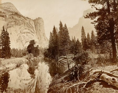 Here we get the colossal and the mystical all detailed with Muybridge’s sensitivity to the camera’s power through lighting effects and perspective. Because of the time exposures necessary, images of waterfalls glow with a haziness and contrast with the hard-edged rocks.