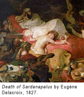 This cheekiness comes to a crescendo in the presentation of Delacroix’s “Death of Sardanapalus.” We’re told that Delacroix’s style was always changing but that “in this work, he abandons the polished finish of Neoclassicism in favor of a more open, loose brushwork.” The crucial difference between Neoclassicism and Romanticism is thus reduced to a differing approach to brushwork. No doubt someone toasted someone in the Phaidon editorial room in celebration of that bit of sass. To top it off, the editors follow “Death of Sardanapalus” with another masterwork in use of the brush, Tani Buncho’s “Dragon in Clouds,” a work of ink on silk from Japan in which we see the “sharp brushwork of the dragon contrasting starkly with the nebulous clouds.” Now pay attention to the brushwork, the editors are saying, and you won’t get lost in the sillier notions about art. Open another bottle of that wine.