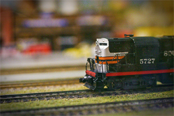 By the same token, the element of scale, which seems so dramatically different when one compares models and movies is not always as formidable as one might think.  Bob demonstrated this by telling me to squat down and look at his village at eye level. The result was to diminish the sense of my real proportions and bring me into the miniature world. This eye-line match, which movies count on to draw us in, is surprisingly effective when achieved in this primitive way. Anyone working for hours on a model train village must become, I imagine, adept at the adjustment, so that simply entering the room where the model village has been laid out results in an accommodation — or rather, an automatic shifting back and forth between the role of giant overseer and Lilliputian inhabitant. This is a dualism akin to what movies engender — of being both outside and safe from the action, and inside, participating in it — but the shifts are more conscious and deliberate in the model world.
