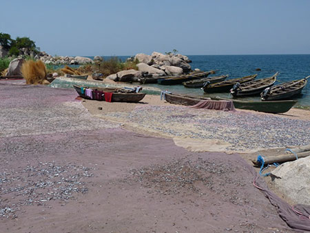 At night I saw warm lights bobbing along the distant horizon. I later learned these were fishing boats on the hunt for dagaa, the local sardine. To catch the tiny, silvery treasures, two big boats string a net between them and smaller boats with lanterns move in concentric circles around them. The glow draws the fish into the nets. The scene was romantic, almost mythic.