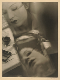 Man Ray’s “Barbette Applying Makeup” from 1926 makes the point as well as any photograph in the show. As Barbette applies her makeup, she is, literally, putting on a mask. Is Barbette even a “she”? It is unclear. Anyway, we see her in two different mirrors as she works. But the images in the two mirrors are amazingly different. The angles change everything. The top mirror gives a clear and straightforward image — Barbette looks hard and clean. The bottom image is blurry and falling apart — she is a leering coquette. Same person, same instant in time, wildly different identities. Here is the shock of juxtaposition, the contradictions that nag at our experience of the world. This is the side of Surrealism with which we’ve long been acquainted.