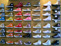 In the mid-1960s, perhaps sensing that even the Amish were growing bored with so limited a spectrum, Converse started making All-Stars in red, blue, and a handful of other colors. And that was pretty much the extent of the All-Star’s evolution. In the 1970s and 1980s, when the sneaker wizards at Nike, Reebok, and other trailblazers started shifting footwear paradigms at a rate surpassed only by the PC industry, Converse remained steadfastly committed to the meager attributes of 1920s arch support engineering. As a result, the All-Star first lost favor as a performance-oriented basketball shoe. Then, it lost favor as a general-purpose recreational shoe.