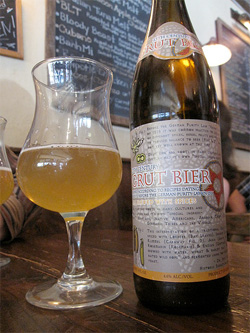 $5.29/500 ml This “smoke beer,” traditionally brewed in Bamberg, takes its flavor from malted barley dried over a fire of beechwood logs. If you like peaty scotches (or smoked bacon) you will love this. 5.1 percent alcohol. Dr. Fritz Briem 1809 Berliner Weisse $6.49/500 ml Briem, who works for brewing consultancy Doemens, is reviving a series of historic but forgotten brewing styles. Zippy, cider-like, assertive. Like saison, it’s bottle-conditioned with lactobacillus, unfiltered and unpasteurized. 5 percent alcohol. Dr. Fritz Briem 13th Century Grut Bier $6.49/500 ml Another Briem effort — brewed with spices, fruit and herbs, a historic style that predates the Reinheitsgebot and the use of hops. Beautiful notes of anise, caraway, ginger, gentian and bay leaves. 4.6 percent alcohol. Sünner Kölsch $3.49/500 ml There are American kölsch versions, but none better than this. Surprising tart fruit and a hint of sweetness, but a clean, crisp finish. 5.3 percent alcohol. Pinkus Müller Organic Pinkus Pils $3.49/500 ml Earthier, maltier and spicier than most Pilseners. From one of the few remaining breweries in the northern German town of Münster. 5 percent alcohol. Georg Schneider Weisen Edel-Weisse $4.49/500 ml Extraordinary, smooth weizen from a historic recipe made with organic barley and hops. Lots of flower and pepper aroma, and rich flavors clove and orange. 6.2 percent alcohol. |