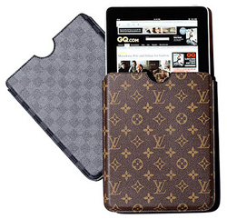 But if the tech journalists were skeptical, the case vendors believed! New products to protect and transport the iPad have been flooding the web over the last two months, and each one is yet another advertisement for the iPad, a vote cast in favor of its legitimacy and its future. Hip Handmaidens offers a case that looks like a giant sanitary napkin. ModulR offers one that integrates a range of accessories, so you can mount your iPad on a car seat or display it on a table like a picture frame. There are iPad holsters, suits with iPad-sized pockets, dresses with iPad-sized pouches, and designer cases from luxury brands like Louis Vuitton.