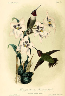 And it is not particularly surprising that John James Audubon also fell under their spell. For the eminent American ornithological artist, hummingbirds were clad in “glittering garments of the rainbow.” Ernst Haeckel, the biologist who popularized evolutionary theory in Germany, later painted a beautiful color plate illustration with different kinds of hummingbirds that became part of his most famous work, Art Forms in Nature.