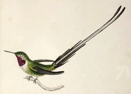 It used to be a widespread belief in both North America and Argentina that migrating hummingbirds hitch a ride in the feathers of larger birds, such as Canada geese. In addition, people sometimes believed that they had it out for humans, presumably because in moments of curiosity these delicate “attackers” may have come too close to someone’s face. As early as 1847, Philip Henry Gosse, the great English 19th century natural historian, punctured this myth in his book The Birds of Jamaica: “The stories told of Hummingbirds attacking men, and striking at the eyes with their needle-like bills, originated, I have no doubt, in the exaggerating of fear, misinterpreting this innocent curiosity.” It is no surprise that these inscrutable creatures have also inspired a number of poets, including Emily Dickinson, Pablo Neruda, and D.H. Lawrence.