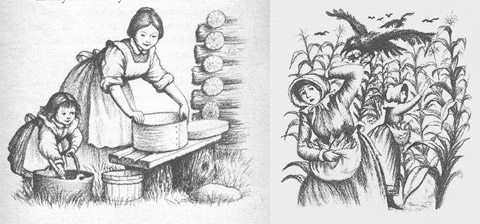 Roald Dahl’s fantasy of excess was all well and good; even better was Laura Ingalls Wilder’s Little House series, which had the gift of making one single piece of candy seem like a miracle. In book number two, Laura sits in her cabin day after day, a very small child sewing on her nine-patch quilt while dull December rains flood the Verdigris river and keep Santa Claus away. Pa shoots a fat turkey for Christmas dinner, but big deal – life sucks without Santa and his candy. You can feel the terrible gloom of Laura’s world in Garth Williams’s classic illustrations: the ominous clouds, the flat land saturated with pools of water, the lonely cabin and outbuildings surrounded by miles and miles of nothing. Then Mr. Edwards shows up wet and shivering on Christmas morning. He’s brought presents from far-away Independence for Laura and her sister — tin cups and shiny new pennies and, best of all, long sticks of peppermint candy which they eat very slowly, licking the ends into skinny points. Candy in the Little House books is all about making that moment of joy last and last. Because after the sweetness is gone, what’s left? Wind and rain, gravy and corn meal mush. Poverty.