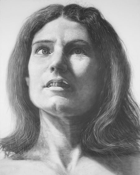 There are no clear answers to these questions. But the very act of using a hand and a brush to make images that look like photographs seemed to reconnect image-making to a much older history. That history goes back to prehistoric man in dark caves making images of beasts on the walls. That’s to say, image-making has always been redolent of the cult and the totem. Man started making images of nature not simply to record and document. He made images to discover secrets, to commune with unknown forces. That may not be the first thought you have in looking at a Photorealist portrait. But maybe it should be. As the exhibit at the National Portrait Gallery demonstrates, even during the height of abstraction, painters were still finding ways to be image-makers in the classic sense of the term. Since then, there has been a widespread return to representational images, to figuration, and even to portraits. The reign of the photograph seems to be over. The power of the painted image of man has shown a staying power no one could have expected in 1954. • 28 July 2014
