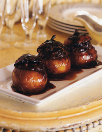 7. Bring the demi-glace to a boil and pour it over the onions. Liberally baste the onions with the demi-glace, and then bake the onions, uncovered, for 1 1/2 hours, or until they’re tender. Baste them frequently throughout the cooking.