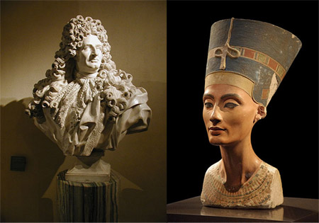 Or consider the famed Nefertiti Bust, which lives isolated in a room at the Egyptian Museum in Berlin. The bust is mostly just a long passage of neck that attaches an extraordinary headdress to a broad floral collar. Nefertiti’s face is the stuff of poetry, but without the neck, the woman is all decoration.