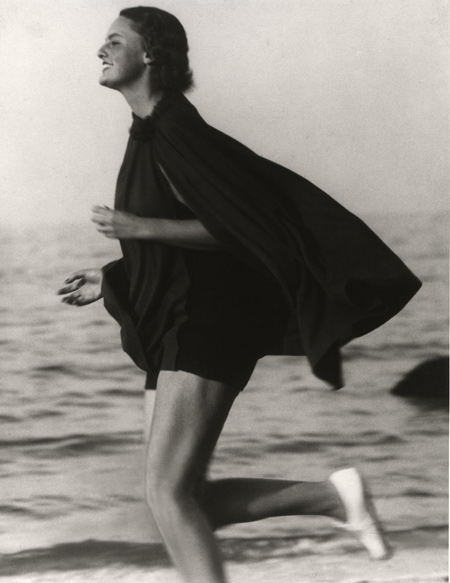 He had the model run along the beach, her dark cape flowing behind her. Munkácsi continued to take his models outdoors, shooting them in action and natural lighting, a quality that would become the norm for later photographers such as Richard Avedon.
