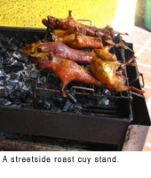 I have been known to eat foods that others snub. As a student, I lived off back-of-the-store, reduced-price vegetables and fruits. Day-or-more-old muffins and danish were a treat. My best company dish was a cheap and tasty enchilada casserole that I made with chicken necks and backs. So it was only natural I should one day undertake a real gastronomic adventure. I should try to eat a pet, a nice small one. A guinea pig would do, and the place to accomplish that was Peru where cuy, as guinea pig is known, was said to be a staple of the traditional diet.