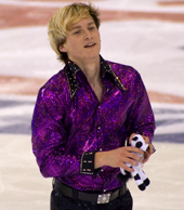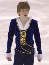 The problem is particularly acute in ice dancing. There are no jumps in ice dancing, so falls are relatively rare. All the teams do basically the same sorts of maneuvers, just put together in a slightly different order and performed to different music. (Although it is increasingly common to see different teams performing to the same music as was the case at Skate America, where two dance teams and several singles skaters all actually performed to the same piece of music.) That means the judging of ice dancing is even more subjective than the judging of singles’ or pairs’ skating, and skaters are desperate to get any sort of advantage they can. Since everyone is doing pretty much the same footwork, this desire for a competitive edge manifests itself in increasingly bizarre costumes. The formula for the average ice dancing outfit, apart from ensuring that the female is as scantily clad as is physically possible, appears to be: Find colors at such disparate ends of the spectrum that their juxtaposition actually induces nausea and then embellish with a torrent of sequins.