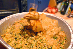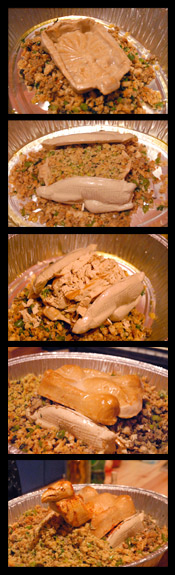 TofukenThere are five basic elements to your Tofucken: fake meat, three stuffings, and gravy. The rest is assembly.