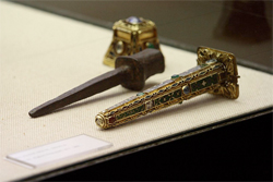 Early Christian writers claimed that Jesus was crucified with four nails. But like the pieces of the True Cross, the Holy Nails have been possessed with the gift of multiplying. Nearly 30 towns in medieval Europe could claim one. There was, of course, an explanation for this, as it was unclear if the provenance of said nail was one of the traditional four pounded into Jesus or if it was one of the (presumably) many that held together the True Cross. Or, as some historians have suggested, just a nail that simply touched one of the real nails. Whatever the case, there were enough of these going around that they seemed rather expendable: Saint Helena was said to have tossed a nail into the sea near Venice to calm a storm. Her son, Constantine, the first Christian Roman emperor, supposedly affixed one to his war helmet. Perhaps in a proto-MacGyver moment, he also refashioned one as a bit for his horse’s bridle. Today relic gawkers can spot a nail at relics-rich Santa Croce in Gerusalemme on the outskirts of Rome.