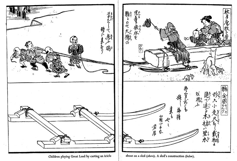 For half of the year people were entirely buried under the snow, and they only spent four months completely without it. “Early Summer Snow,” the headline of one of the many vignettes in this book, describes these circumstances. Plum trees did not blossom before April or even May. As late as in early June there were large chunks of ice on the fields that had to be sawed into blocks so they could be taken away to allow rice to be planted. Springtime also signified a return of daylight: