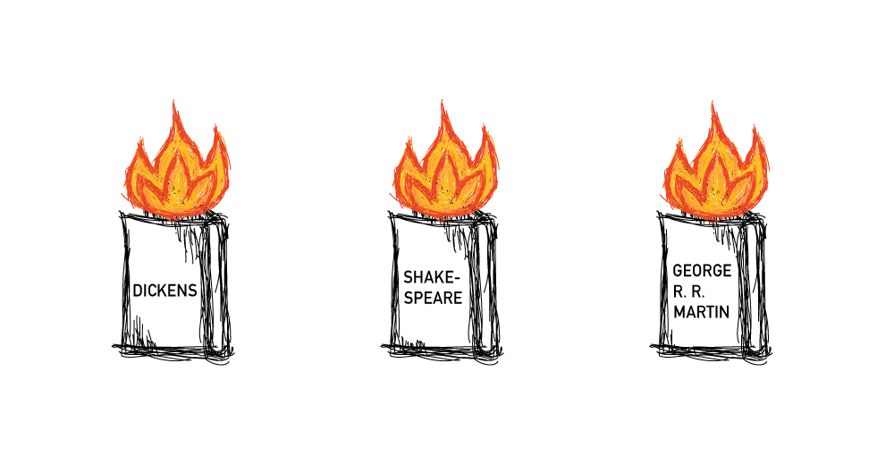 Speaking for myself, I’d say my conscience is pretty clear. I almost never write about people I don’t love, and on the rare occasions that I have, I’ve found something to admire in works that might otherwise repel me. Not that it made any difference. For fans of George R. R. Martin, to take one of those rare examples, my appreciation of Martin’s half-crazed inventiveness and erudition counted for nothing. I was just another cold, sneering academic (actually, I’m a librarian) who enviously savaged a great writer for picayune faults in his prose style. On the contrary, I was criticizing Martin for elephantine faults in his style and sensibility. While I hardly expected to endear myself to his fans, I understood perfectly well that a counter argument could be and indeed has been made for Martin as the liberator of fantasy fiction, as the fulfillment of what J. R. R. Tolkien only promised — Tolkien with the gloves off, so to speak. Naturally I mustered the best argument I could, but maybe, if I examine my conscience, there was more to it than that. Maybe I was just a little sick of the great “wit” Tyrion Lannister talking about his cock all the time or of the endless scenes of torture and bloodletting expounded with such sadistic glee. Like Tolstoy ragging on about Shakespeare, maybe I wanted to discomfit readers who, as I saw it, were taking a little too much pleasure in Martin’s cruelty and ugliness. Of course, nobody noticed anyway. The few who did, serenely go on reading A Game of Thrones and other George R. R. Martin novels, as they should. Was my modest little critique better or worse for its slight injection of schadenfreude? The answer to that question might best be settled in a bar. •