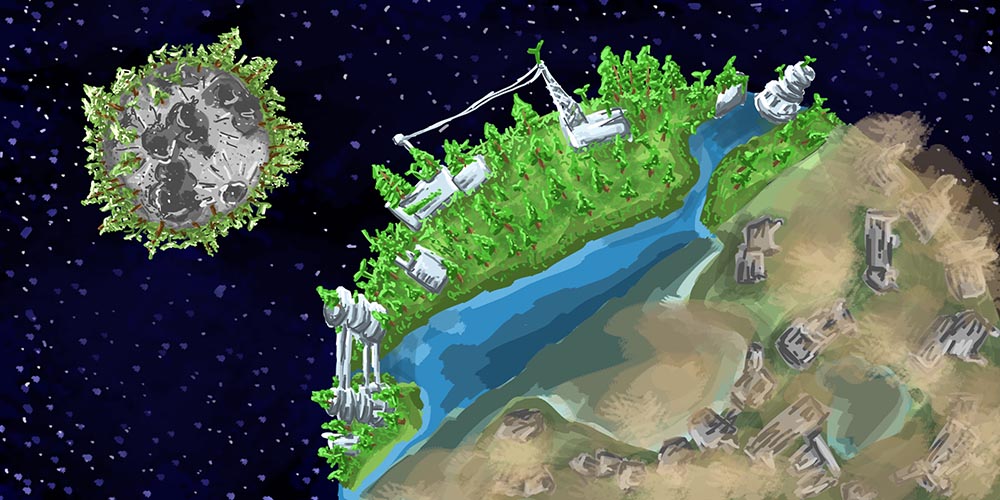 Joe Toscano’s book Automating Humanity is illustrated with visions of two worlds: one a cold, corporate wasteland, where the ubiquitous iconography of companies like Facebook, Google, and Apple looms large over their slavish users; and the other a warm wonderland, where technology and nature have come together in miraculous ways, allowing for off-planet farming and living architecture. The images are beautifully rendered by graphic designer Mike Winkelmann, and they evoke the fork in the road that Toscano suggests technology presents us with — to heaven or hell.