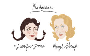 I can also happily report that the other extreme of the Madonna/whore complex is equally unrepresented. Only one actor has won for a full-on religious Madonna role: Jennifer Jones as Bernadette Soubirous in 1943’s The Song of Bernadette, and there have been only four other Madonna-esque roles that have won: that is, four actresses playing characters who sacrifice themselves for the good of their children or husband have won the award, and none of those occurred after 1982 when Meryl Streep won for Sophie’s Choice.
