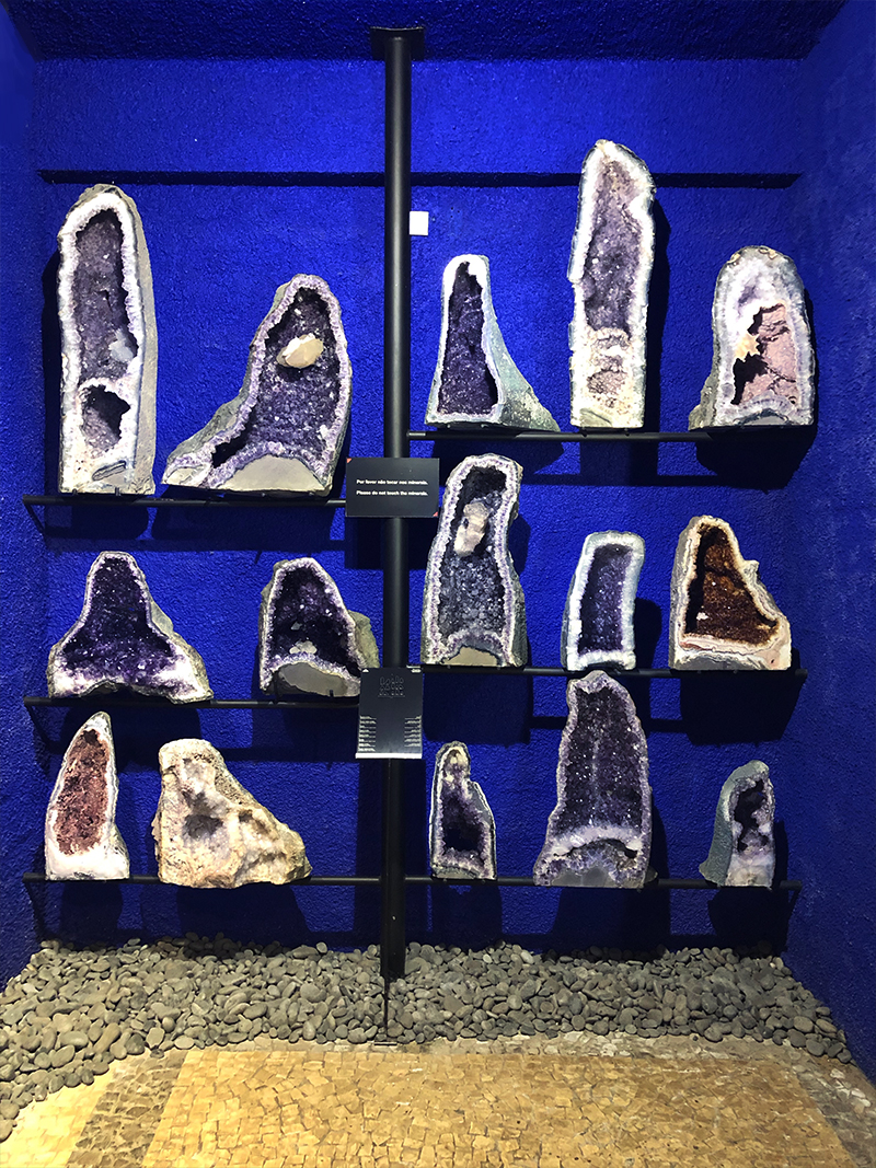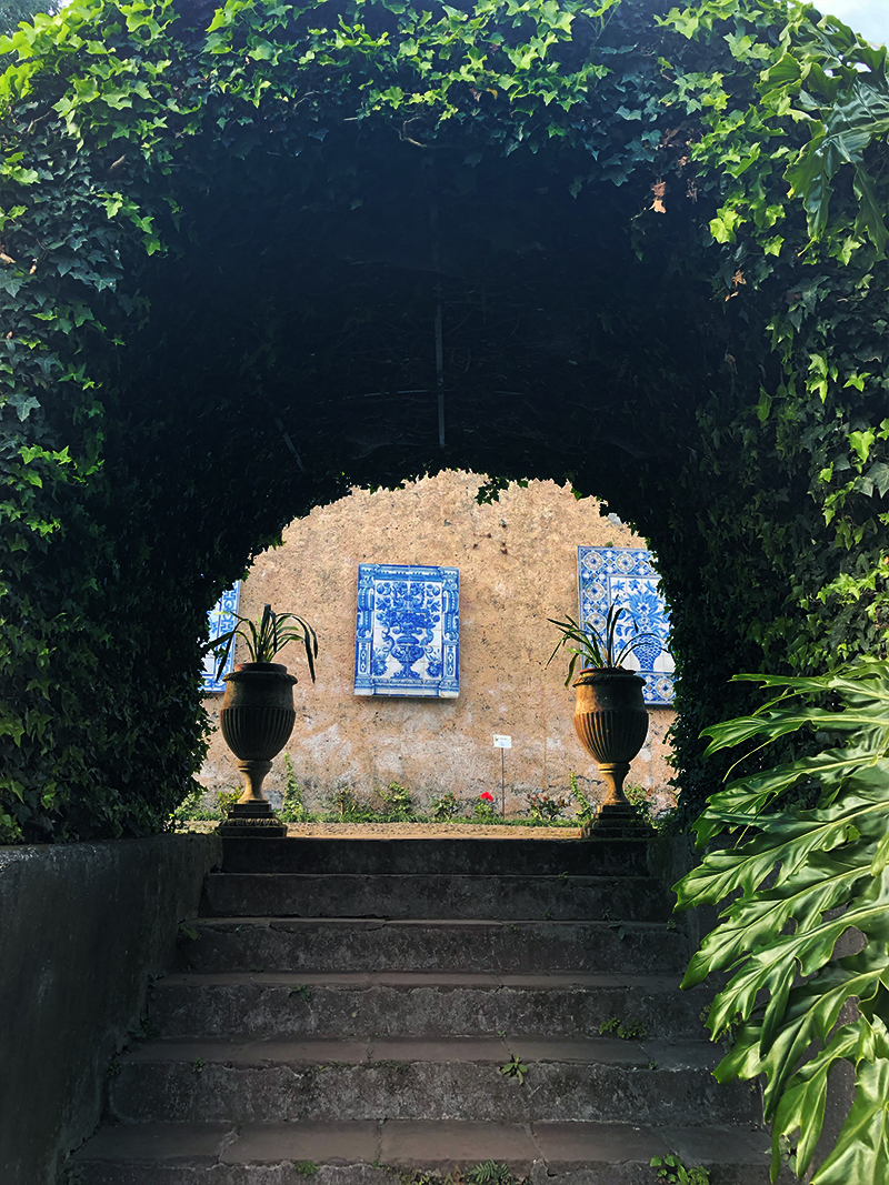 Of the many gardens and tropical plants on Madeira I loved the Tropical Garden at Monte Palace. Below there’s a museum where minerals and gemstones are inventively set against a brilliant blue wall. And further down are the tropical gardens. Here I imagined a rainforest with wild animals. At least I found orchids, azaleas, hydrangeas, sequoias, acacias, and a laurel forest while thousand-year-old olive trees hang over koi fish that can live for a century beside the resident swans and peacocks. It was so uplifting to stroll along the many elegant straight avenues of cobbled walkways adorned with niches and arches, coats of arms, and Hispano Moorish tiles.