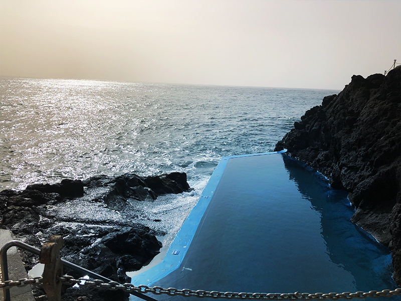 In stark contrast to the hotel’s overall neatness is the wild below reached by a choice of steps or a lift within a tower beside nautical pennants of the clientele’s most popular nations. It took me down to the seashore and to a tidal pool that is refilled daily by the ocean as it emits its irons of seawater. A visual delight. A fantastic viewpoint. A creative marriage of design and nature as it offered me a tailor-made experience to lie there and eat amongst the many layers of rock. Luxury and nature are stunningly intertwined.
