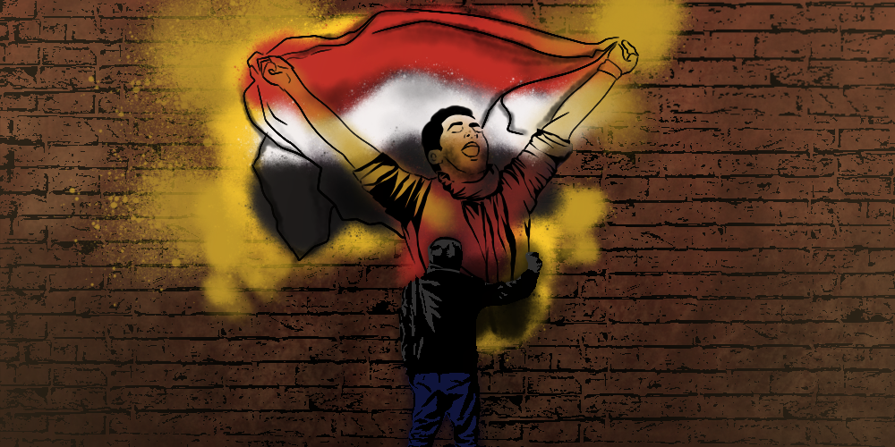 Agreeing with journalist Rami G. Khouri, who claims that “There is no single, unifying theme to the Arab Uprising,” Shilton overlooks evidence to the contrary. Take, for example, Mohamed Mounir’s song “Ezay” or Eskenderella’s “Ragg’een”. The first song conducts an imaginary dialogue between a lover and his beloved, an active citizen and his impossibly strenuous country. The dialogue proceeds in the form of a committed citizen berating his or her country the way a lover rebukes his beloved for not taking heed to pay back attention. One line bursts of Hegelian determinism as it reads: “Had I loved out of choice, my feelings would have changed a long time ago.” Still, that citizen’s commitment keeps steadfast his intention to reverse the present frigid relationship between what are basically lovers, oneself and one’s homeland. Only intention — Hegel reminds us — distinguishes Man from animals and other ahistorical creatures. Only the intention to defy circumstances creates man as a historical subject capable of marshaling the courage to reverse adversity and achieve emancipation. Because they specifically do not indulge in iconography even when they build on icons, these songs among several others promulgate the emancipatory spirit that animates the Arab uprisings.