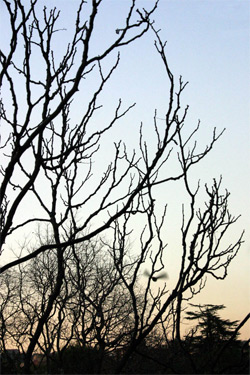 I hike on foot while a few four-wheelers careen and sputter somewhere behind me. I climb a steep trail up a blind hill. An RV is parked near the pull-off where I entered, and, once on the ridge, I spot a cluster of other campers in a small valley to the north. It looks as if they have a bonfire going. I scribble a few lines in my pocket notebook. I hear one of the four-wheelers rev and chortle over a switchback.
