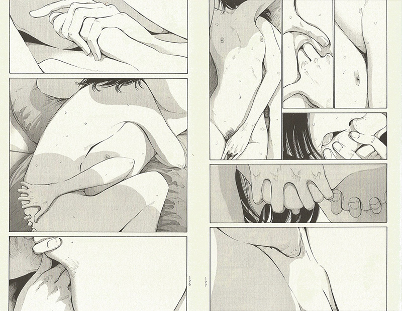 While Goodnight Punpun indulges in all manner surreal imagery and narrative tricks, A Girl on the Shore (originally serialized 2009-2013) is presented in a more straightforward and realistic manner. Gone is the magical realism. Instead we have two teens, Koume and Keisuke, who begin an affair in a quiet seaside town.