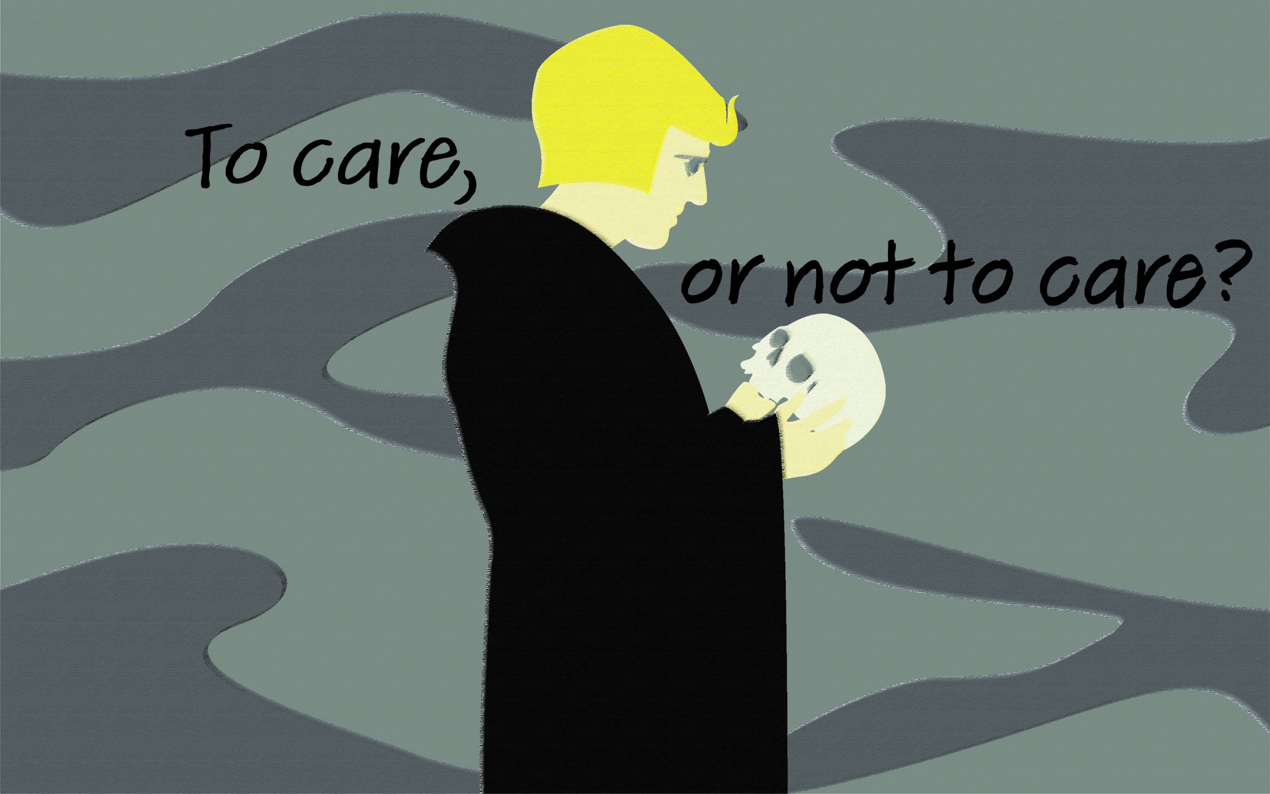 People often think of Hamlet’s most famous quandary as a question of life or death — to be, that is, is to live, or not to be, that is, to die. But maybe his distinction was subtler. Maybe he was thinking about the gap, however small, that exists between living and being. Because being is not something that really has a beginning, a middle, and an end – the way we think of life. It has only the present moment. So what if, to slightly rephrase Hamlet, the actual question is, “To be – or to live?” Maybe his problem wasn’t whether to live or die. It was the imagined fear of what our consciousness, or spirit, experiences when it’s not living, when it’s just being. “Not to be” is to live as much as it is to die. Being, as a state of suspension, is neither weariness nor unknown dreams, it’s just the way we are when we worry about nothing: neither life nor death. It’s existing without caring about the fact that we exist. So maybe another way of putting the question might be, “To care — or not to care?”